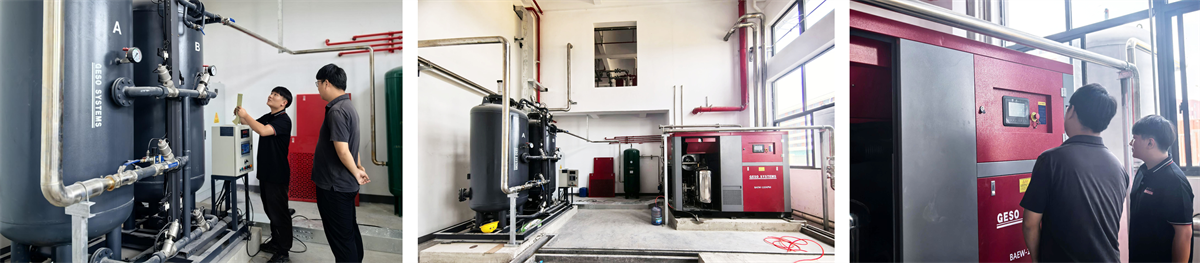 - Gesonun yağsız su yağlanmış hava kompressoru, İSO 8573-1 sinfi 0 standartına cavab verən 100% yağsız sıxılmış hava təqdim edərək təmiz suyu sürtgü kimi istifadə edir. Dəqiq bir filtrasiya sistemi ilə təchiz olunmuşdur, dəqiq alət istehsalının təhlükəsizliyini təmin edən, 0.01μm-dən böyük hissəcikləri effektiv şəkildə aradan qaldırır.